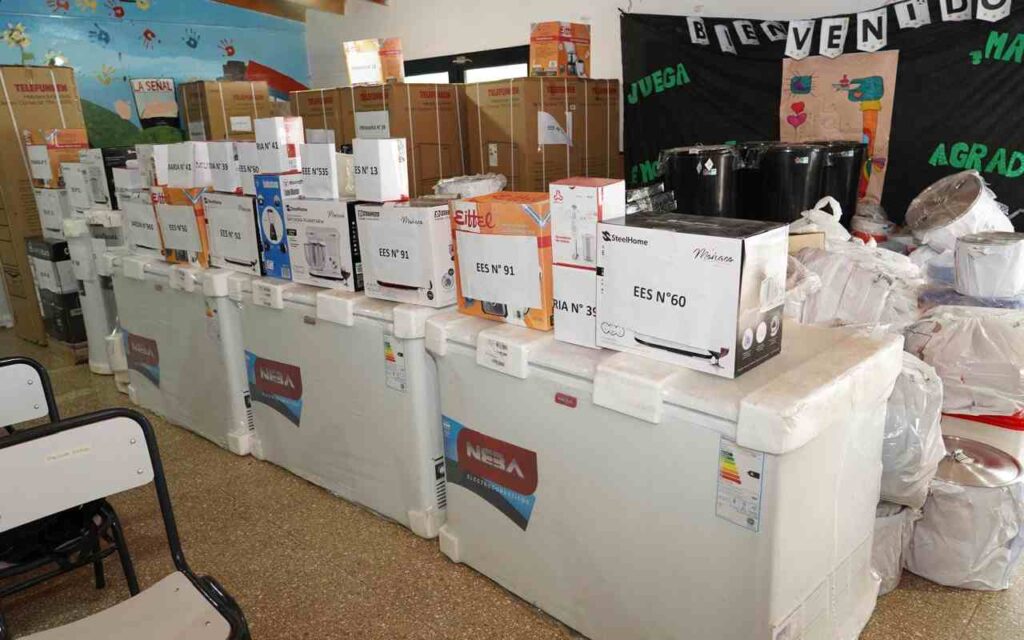 Entre los elementos entregados se incluyen cocinas, procesadoras, heladeras, congeladores, un termotanque, un horno pizzero, vajillas, balanzas, batidoras, licuadoras y batidoras con el objetivo de fortalecer la infraestructura de los comedores y mejorar las condiciones en las que se elaboran y sirven los alimentos.