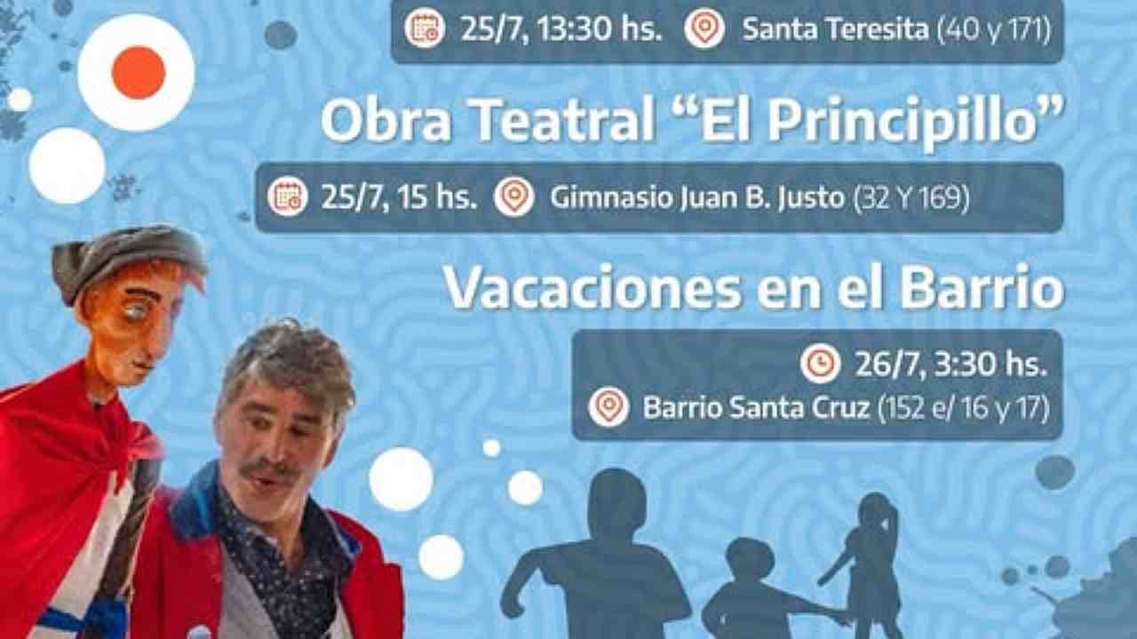 - 13:30 hs – En Santa Teresita (40 y 171) se presentará la obra teatral “El Principillo”, una adaptación para toda la familia que invita a reflexionar desde la ternura y el humor.