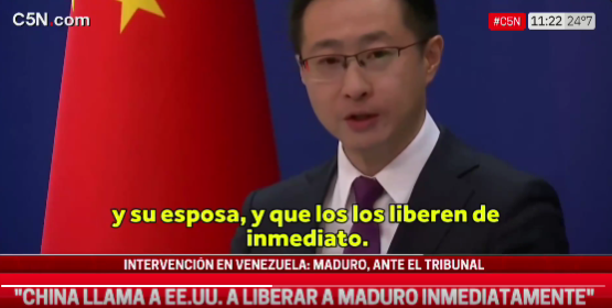 AAEL DIARIOINTERNACIONALESTVVIDEO China instó a Estados Unidos a liberar de inmediato al presidente Maduro y su esposa