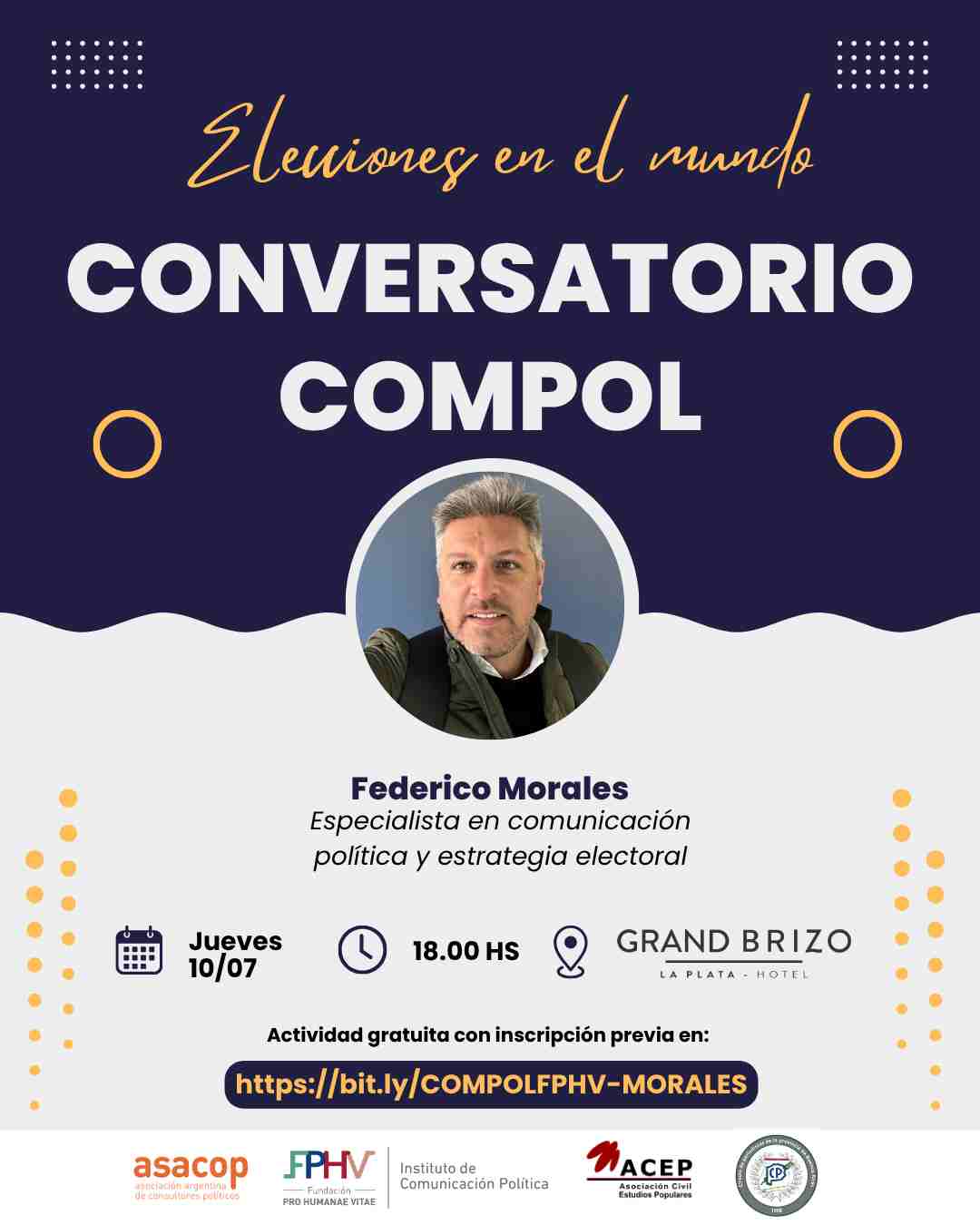 AACAPACITACIÓNEL DIARIOGOBIERNOONGPOLÍTICA Federico Morales disertará en La Plata sobre elecciones globales en el nuevo encuentro del ciclo Conversatorio ComPol