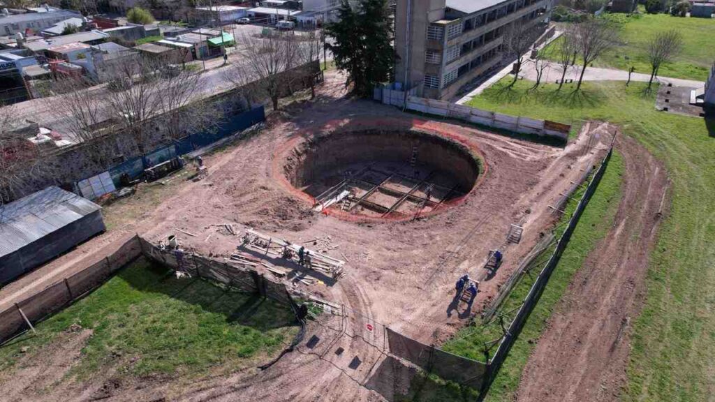 Los trabajos comenzaron en el área delimitada por las avenidas 137, 72 y 74, con la excavación de tierra para generar una estructura con tabiques de hormigón armado, que constituirán las bases del recinto, donde actualmente trabajan una decena de obreros con maquinaria y retroexcavadoras.