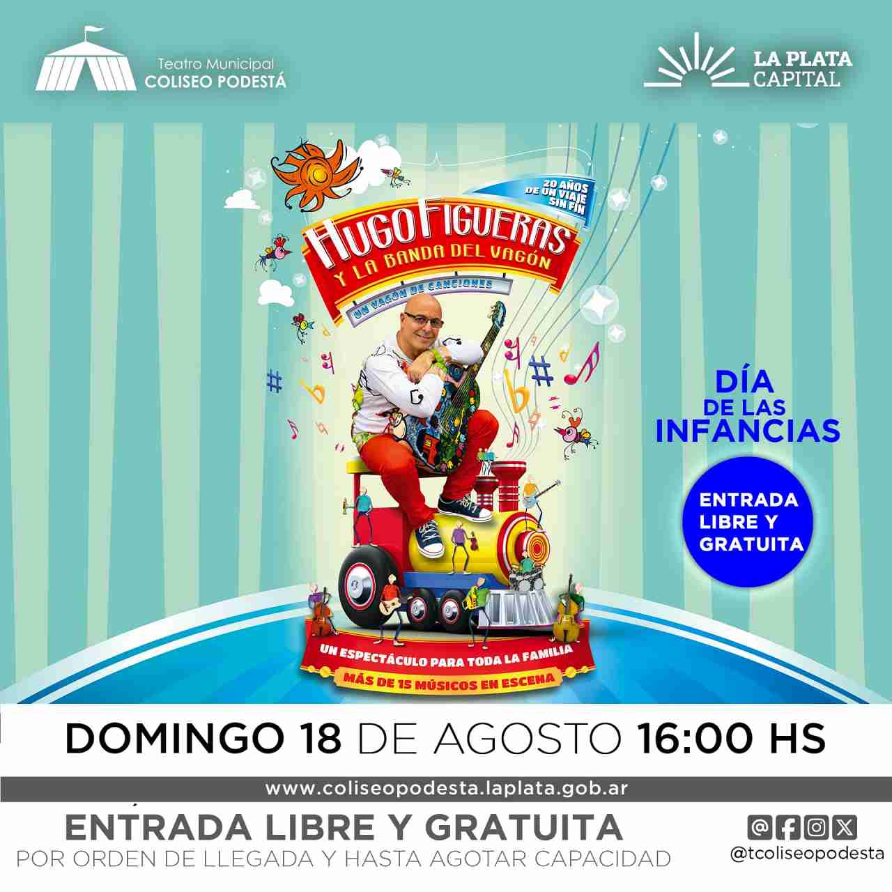 El domingo 18 de agosto, a las 16 horas, Hugo Figueras y la Banda del Vagón traerán “Un Vagón de Canciones” para festejar el Día de las Infancias en el Teatro Municipal Coliseo Podestá.