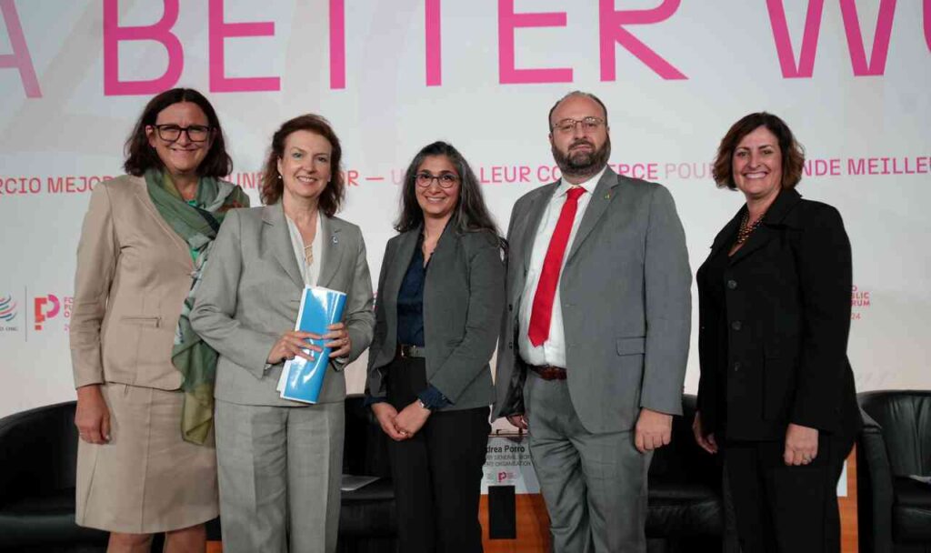 En el marco de su visita oficial a Suiza y Austria, la Canciller Diana Mondino participó ayer en la sede de la OMC, ciudad de Ginebra, del Foro Público 2024 -evento que cada año convoca a cientos de especialistas del mundo para analizar la situación del sistema multilateral de comercio-, donde disertó en el Panel de alto nivel “Cosechando inclusividad: repensando el comercio agrícola”.
