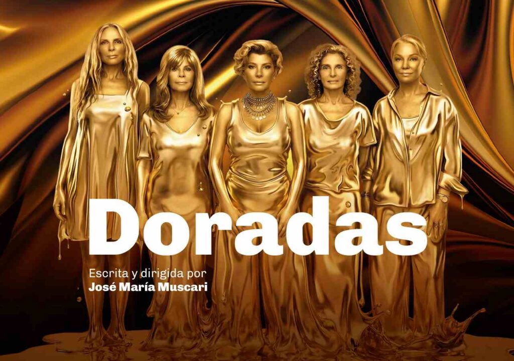 “Cinco actrices populares que actuaron toda la vida, pero que ahora en su madurez artística llegan por primera vez al prestigio del Cervantes. Una obra escrita con la colaboración de la inteligencia artificial que combina confesiones personales e ingredientes retro. Un manifiesto sobre la fama, el paso del tiempo y las emociones maquilladas. Doradas es, quizás, el pretexto para verlas a ellas nuevamente refulgentes.”