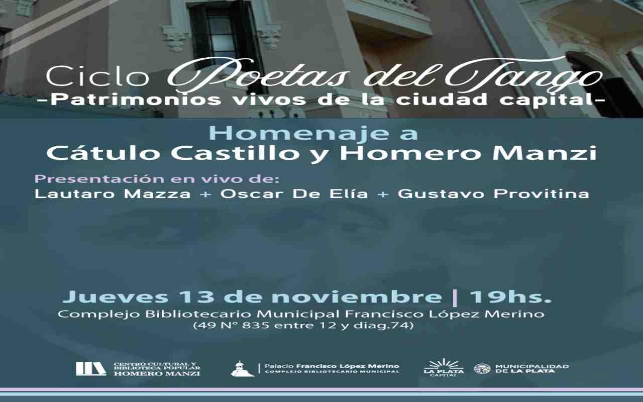 El Ciclo “Poetas del Tango” es una propuesta cultural conmemorativa impulsada y co-producida por el Centro Cultural y Biblioteca Popular Homero Manzi, institución con amplia trayectoria en la gestión cultural platense, junto a tres figuras destacadas de la cultura y el apoyo de la Municipalidad de La Plata; se lleva adelante desde 2024 en el Palacio Francisco López Merino.