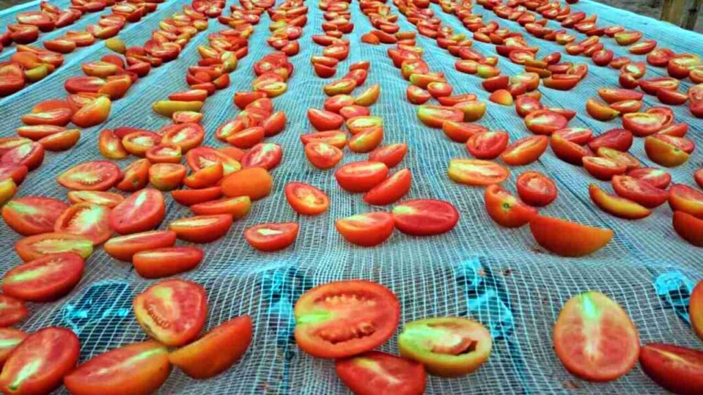 El proceso de agregado de valor de la cooperativa en el caso del tomate se da a partir de la cosecha: se lavan en una pileta, se cortan a la mitad manualmente, luego pasan a unos secaderos con sal gruesa que son de catre, con de 45 metros de largo y 50 metros de ancho, un modelo del INTA Bermejo en el que se asesoró a la cooperativa en su construcción, y tiene la capacidad de secar media hectárea de tomate por día. Todo el proceso es manual, el secado del tomate en cuatro días ya está seco y vuelve a empezar.