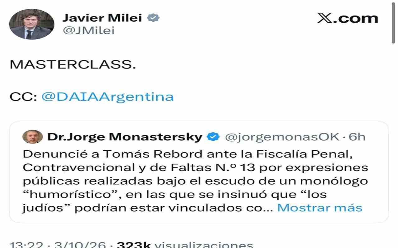 javier-milei-rebord Navegación de entradas Previous: Javier Milei, a favor de la denuncia contra Tomás Rebord