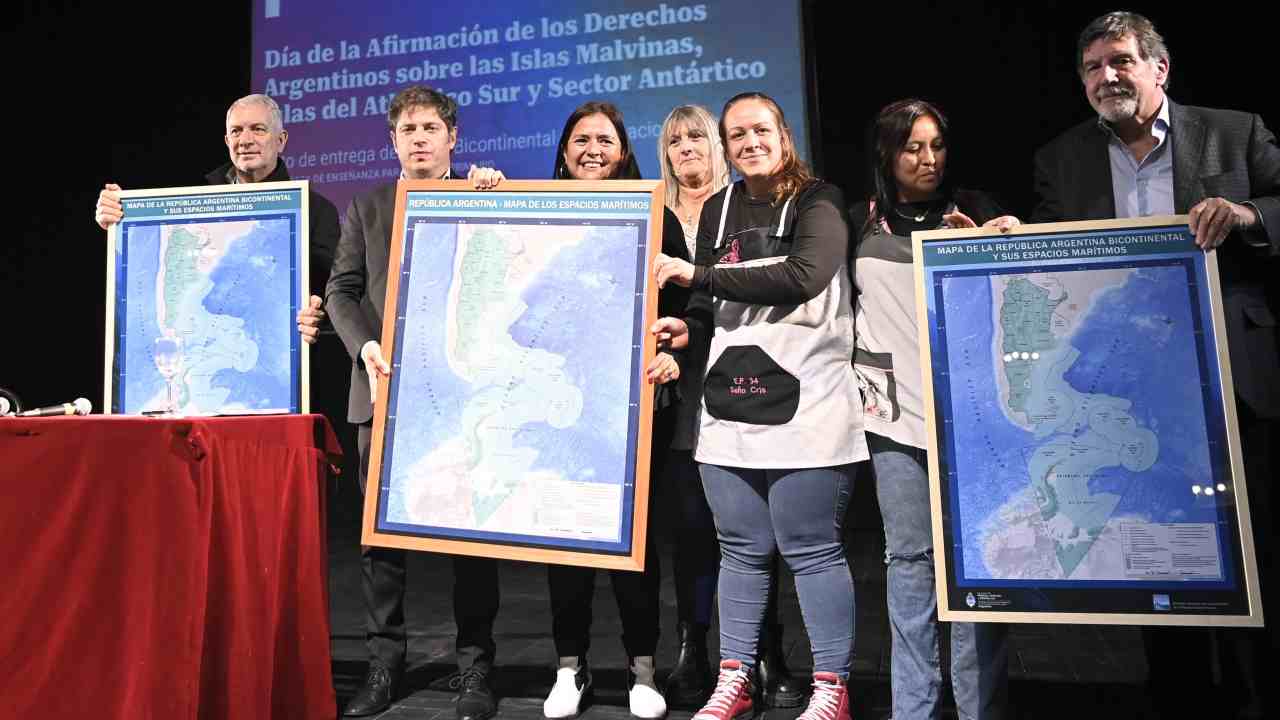 En ese marco, se llevó a cabo la capacitación docente de una propuesta pedagógica que aborda la enseñanza del mapa político de la Argentina a alumnos y alumnas de 6° año del nivel primario de escuelas de gestión estatal. Las instituciones comenzaron a recibir este mes más de 7.000 mapas bicontinentales y de espacios marítimos.