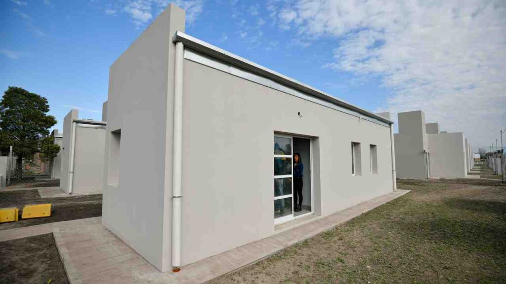 Las viviendas ubicadas en el barrio Solidaridad fueron construidas mediante el Programa Bonaerense II – Solidaridad con Municipios y cuentan con 56 metros cuadrados, sala de estar-comedor, dos dormitorios, cocina, baño y lavadero. En el mismo predio se encuentran en ejecución otras 32 casas.