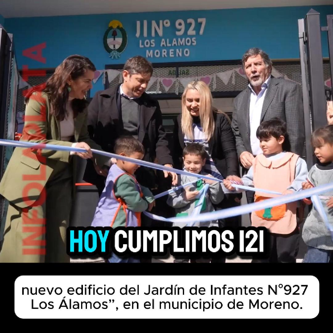 El gobernador de la provincia de Buenos Aires, Axel Kicillof, encabezó este jueves la inauguración del nuevo edificio del Jardín de Infantes N°927 “Los Álamos”, en el municipio de Moreno.