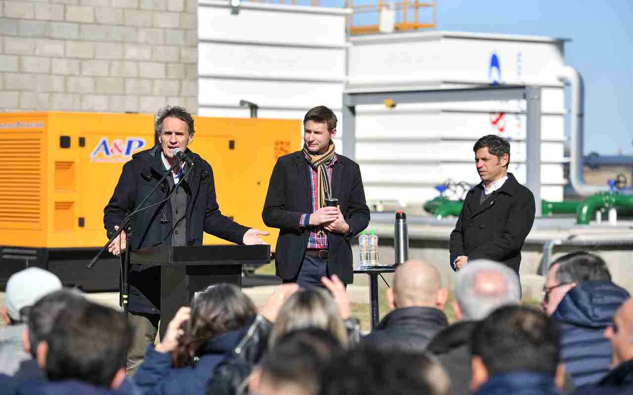 El gobernador de la provincia de Buenos Aires, Axel Kicillof, encabezó este miércoles el acto de inauguración de una planta potabilizadora de agua en la ciudad de Vedia, junto al ministro de Infraestructura y Servicios Públicos, Gabriel Katopodis; y el intendente de Leandro N. Alem, Carlos Ferraris.