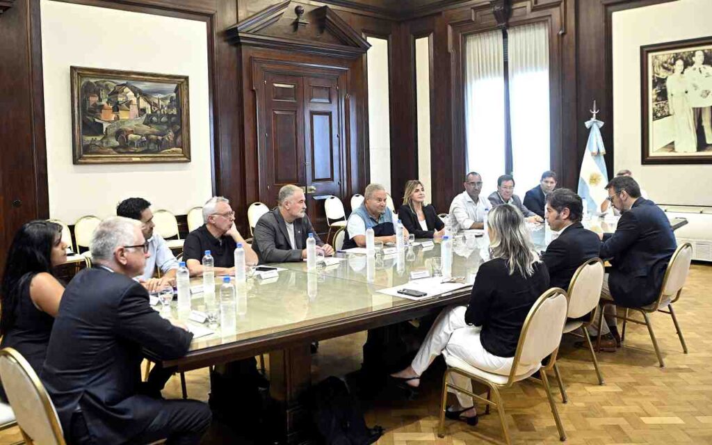 El gobernador Axel Kicillof encabezó este martes una reunión con 13 intendentes bonaerenses que firmaron convenios de leasing para adquirir equipamiento por más de $6.871. El encuentro se realizó en el Salón de los Acuerdos de Casa de Gobierno, con la participación del presidente de Banco Provincia, Juan Cuattromo, y la presidenta de Provincia Leasing, Valeria Dallera.