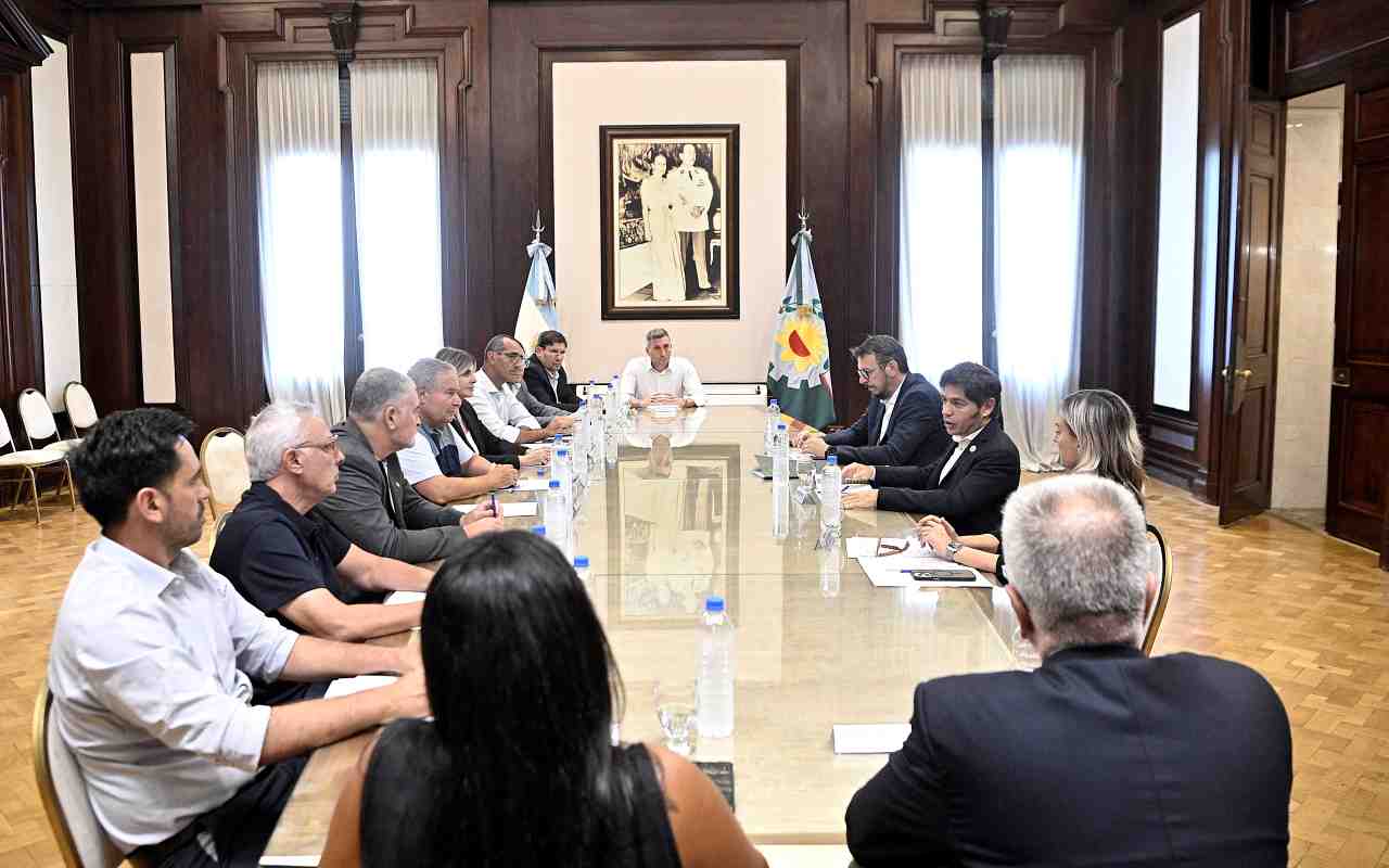 El gobernador Axel Kicillof encabezó este martes una reunión con 13 intendentes bonaerenses que firmaron convenios de leasing para adquirir equipamiento por más de $6.871. El encuentro se realizó en el Salón de los Acuerdos de Casa de Gobierno, con la participación del presidente de Banco Provincia, Juan Cuattromo, y la presidenta de Provincia Leasing, Valeria Dallera.