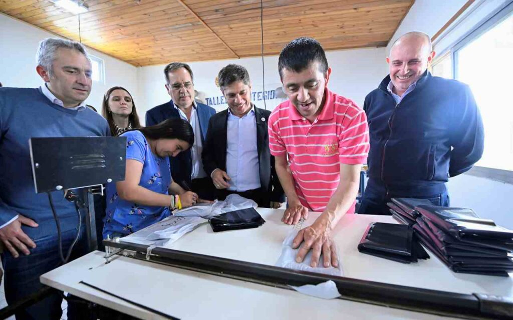 El gobernador de la provincia de Buenos Aires, Axel Kicillof, visitó este miércoles un centro de jubilados y un taller que promueve la inserción social y laboral de personas con discapacidad en el municipio de General Pinto. Fue junto al ministro de Desarrollo de la Comunidad, Andrés Larroque; el presidente de la Cámara de Diputados bonaerense, Alexis Guerrera; el intendente interino, Fernando Rodríguez.