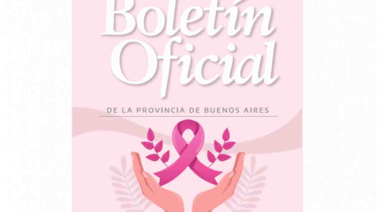 Como parte de su adhesión, el Boletín Oficial de hoy presenta una tapa especial que incluye el símbolo de la cinta rosada cruzada, emblema internacional de la lucha contra el cáncer de mama, junto a la leyenda: “Mes de la concientización contra el cáncer de mama”. La publicación puede consultarse en: https://boletinoficial.gba.gob.ar