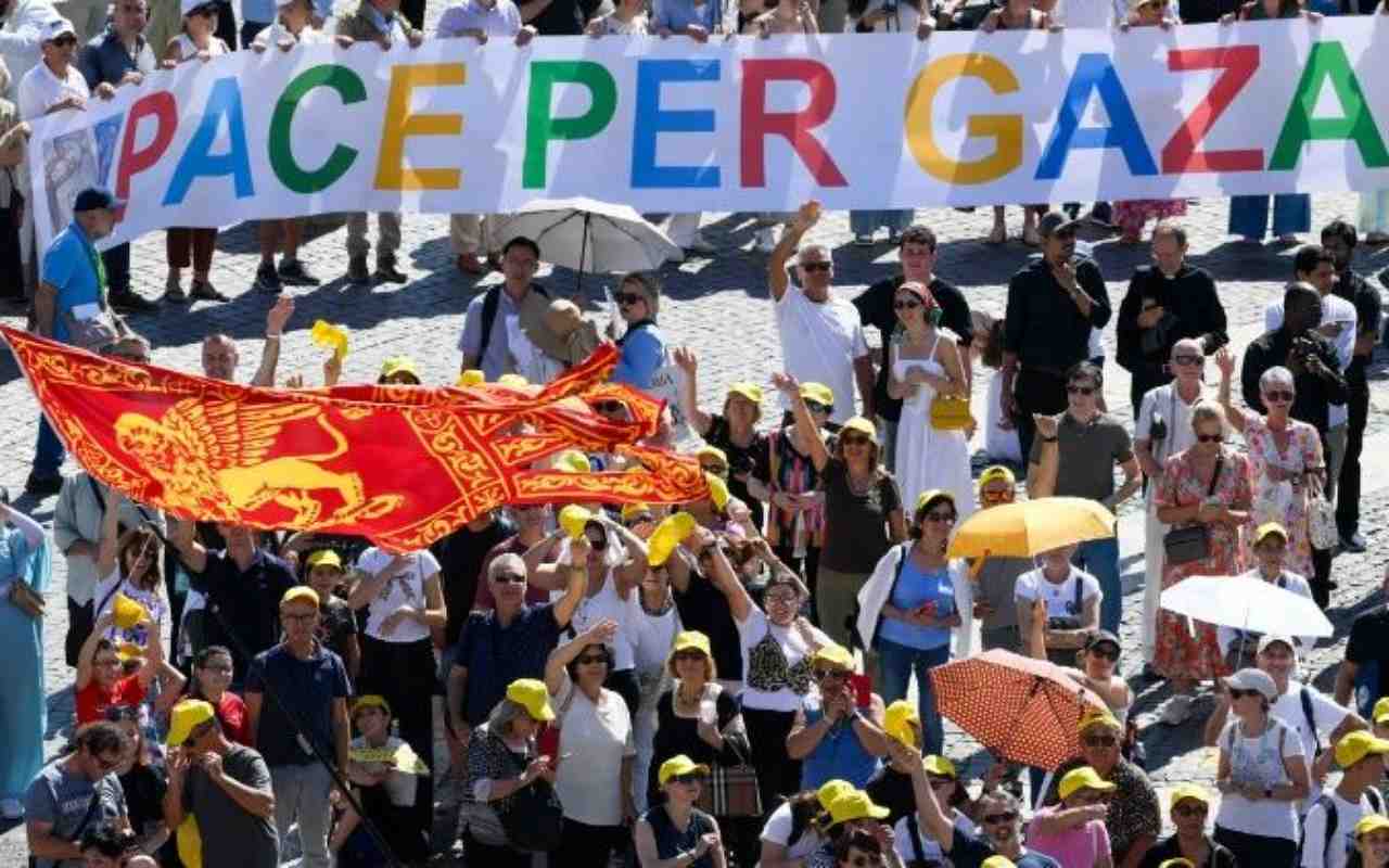 Las imágenes de los palestinos huyendo de la ciudad de Gaza en automóviles, camiones, carretas improvisadas e incluso a pie, tras la orden de evacuación del ejército israelí, están en el corazón del Papa León XIV, quien, tras la oración del Ángelus de este domingo, se dirigió a los representantes de diversas asociaciones católicas comprometidas en la solidaridad con la población de la Franja de Gaza y presentes en la Plaza de San Pedro. El Papa manifestó su aprecio por su iniciativa «y muchas otras que en toda la Iglesia expresan cercanía a los hermanos y hermanas que sufren en esa tierra martirizada».
