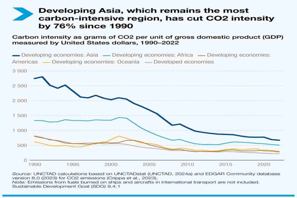 Tras señalar importantes disparidades regionales en cuanto a intensidad de carbono, ONU Comercio y Desarrollo pide más apoyo a las regiones en desarrollo para que refuercen las infraestructuras sostenibles y las tecnologías con menos emisiones de carbono. Estos esfuerzos serán fundamentales para aumentar la eficiencia energética y eliminar progresivamente los métodos contaminantes de generación de energía.