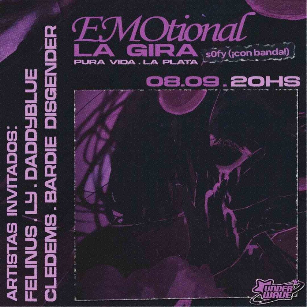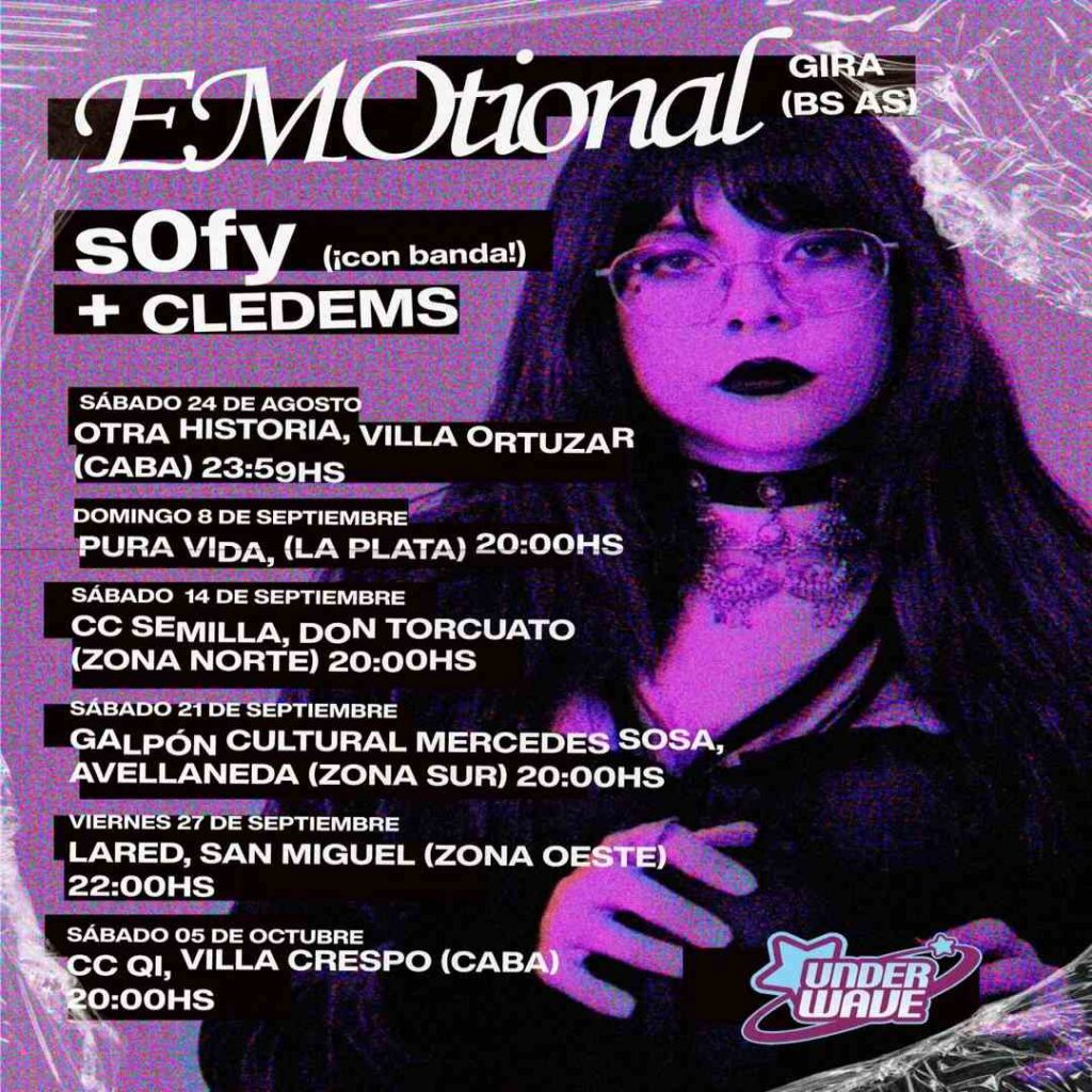 Tras la presentación oficial de su tercer EP EMOtional en Batacazo Cultural el pasado 16 de agosto y la participación en la primera edición de la Underwave Nite que tuvo lugar en Otra Historia el sábado 24, s0fy inicia una gira por el conurbano acompañada por la banda Cledems como músicos sesionistas, con los que presenta un set totalmente eléctrico y potente.