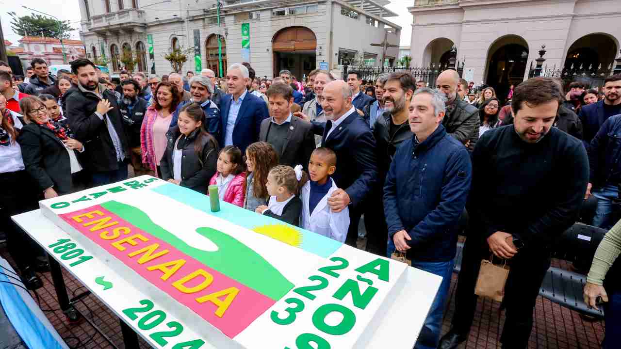 Kicillof destacó que “la celebración de este aniversario de Ensenada, un distrito vinculado a grandes luchas a lo largo de la historia, nos encuentra nuevamente peleando por los derechos”. “En estos momentos en los que quieren poner de remate todo el capital social de la Argentina, la provincia de Buenos Aires va a defender la educación, la salud y el futuro de nuestro pueblo”, agregó.