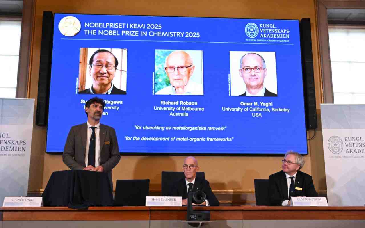 Los científicos Susumu Kitagawa, Richard Robson y Omar M. Yaghi fueron galardonados con el Premio Nobel de Química por su trabajo en el desarrollo de estructuras metalorgánicas, según anunció la Real Academia de las Ciencias Sueca.