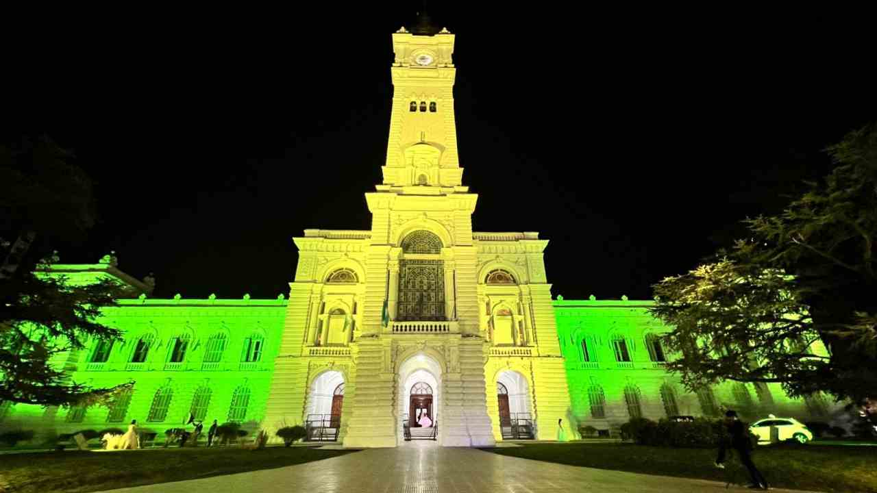 A MUNICIPIOSAABILATERALESEL DIARIOGOBIERNO El Palacio Municipal de La Plata se iluminó con los colores de la bandera de Brasil