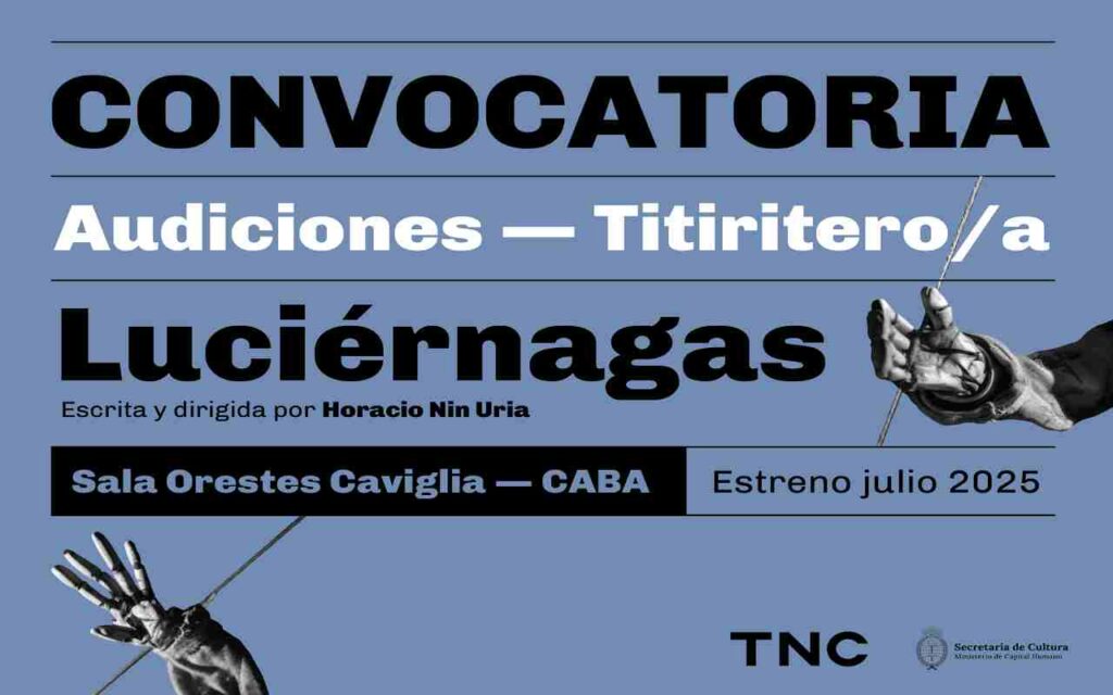 A partir del lunes 24 de febrero, el Teatro Nacional Cervantes abre una convocatoria para formar parte de la obra Luciérnagas, escrita y dirigida por Horacio Nin Uría, a estrenarse en la sala Orestes Caviglia del TNC en el mes de julio.