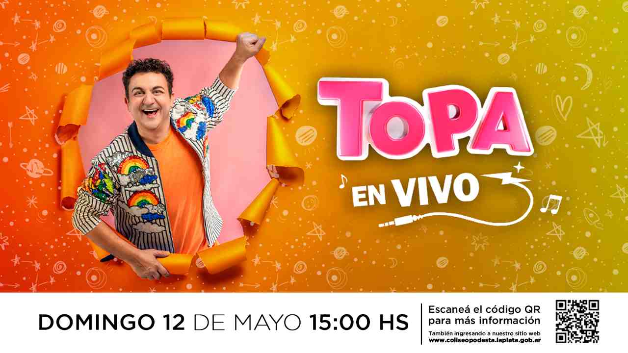 «Es una alegría enorme para mi volver a estar cantando y bailando en el Teatro Municipal Coliseo Podestá de mi querida ciudad de La Plata. Es un escenario lleno de historia y estoy muy feliz y agradecido de poder estar ahí con mi espectáculo, para llevar mi show y mi alegría a los más chiquitos y sus familias», dice Diego Topa.