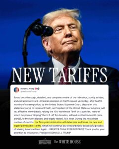 trump aranceles nuevos Navegación de entradas Previous: Trump elevó nuevo arancel global del 10 al 15 por ciento